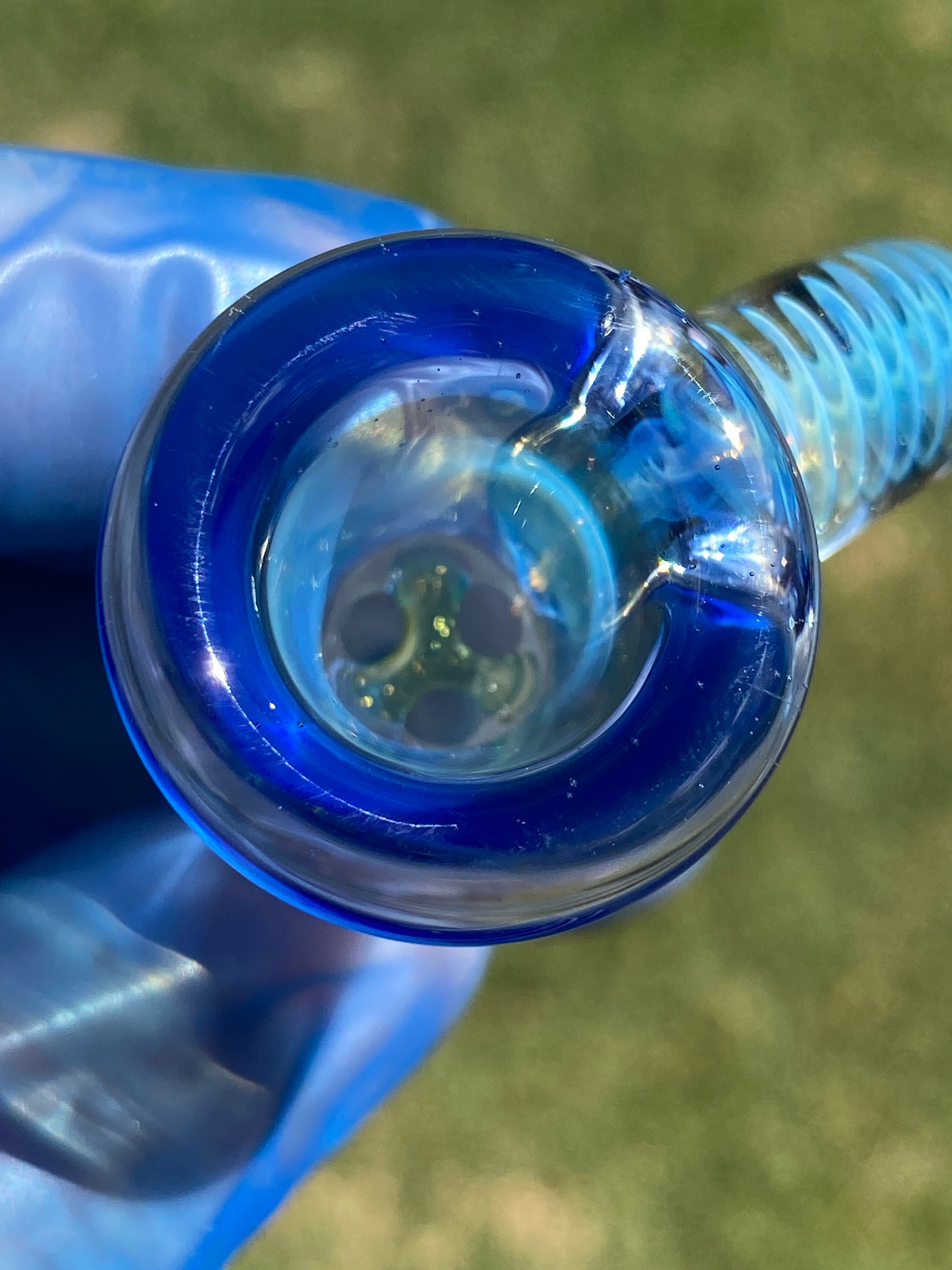 A blend of fluid form and vibrant colorwork, the SimpleLemonFarmer Blue Slide embodies the distinctive craftsmanship and artistic flair that defines SLF’s hand-worked pieces. This slide merges bold blue hues with a sculptural handle design, creating a functional accessory that stands out as both tool and art.