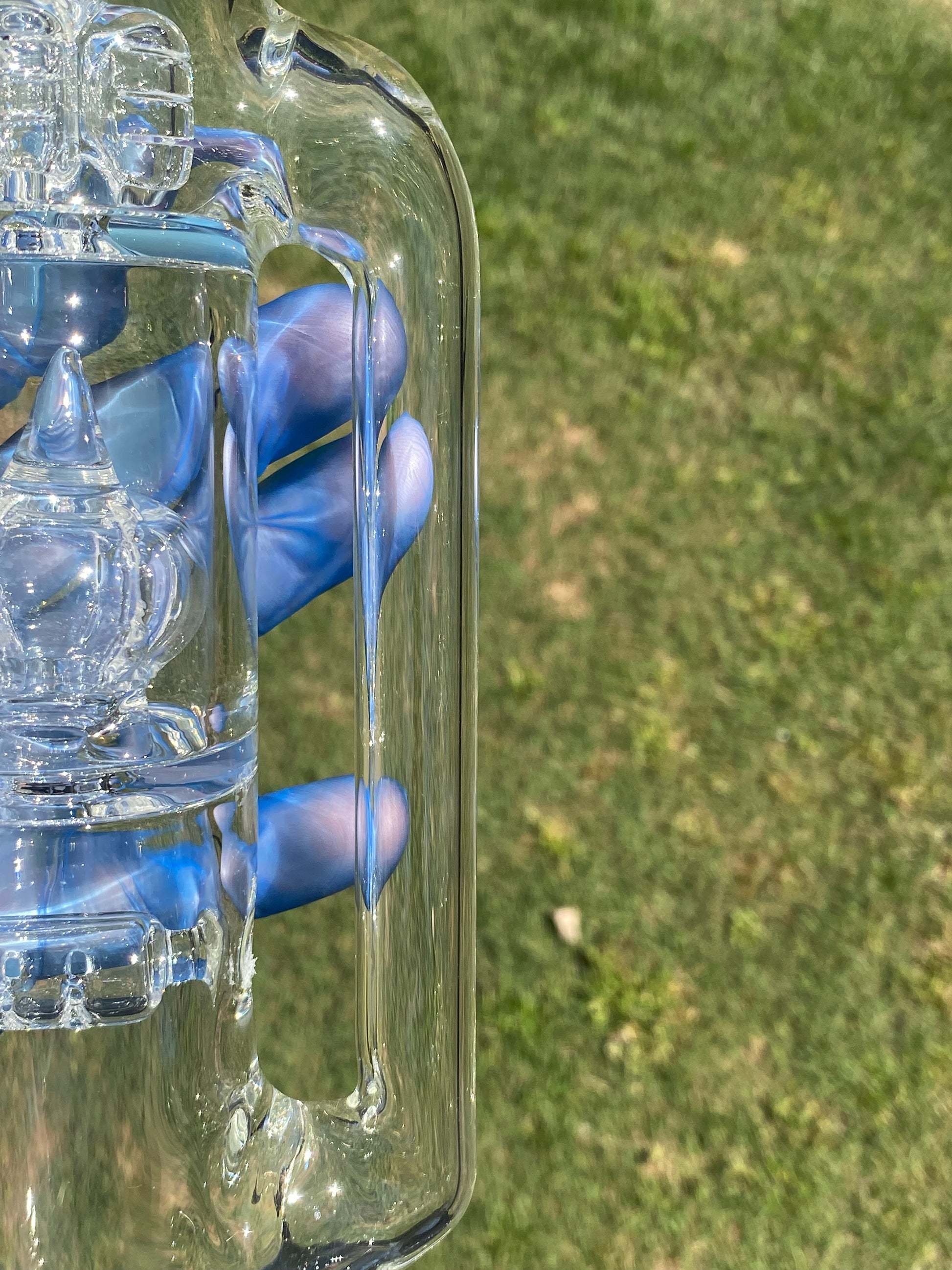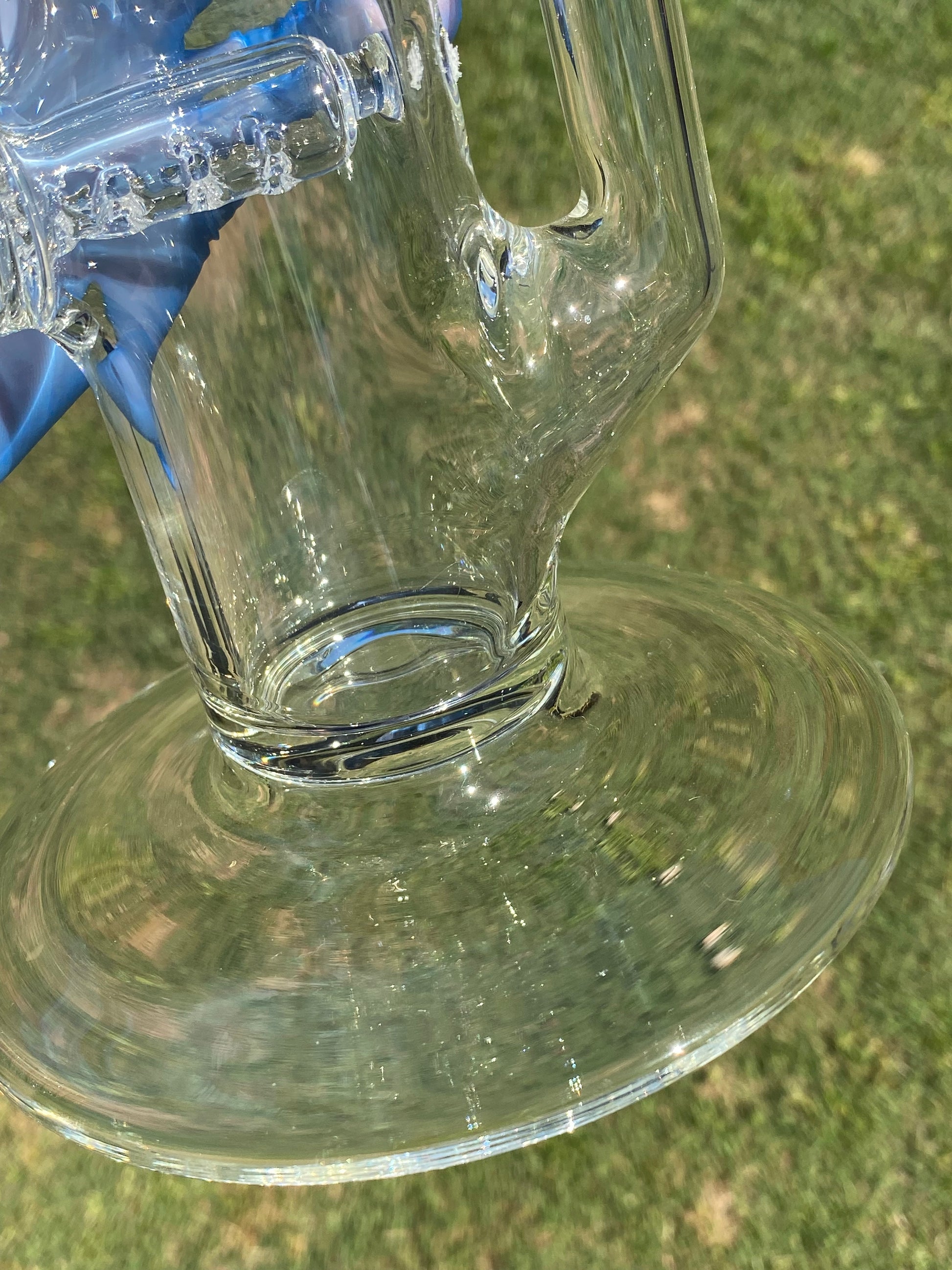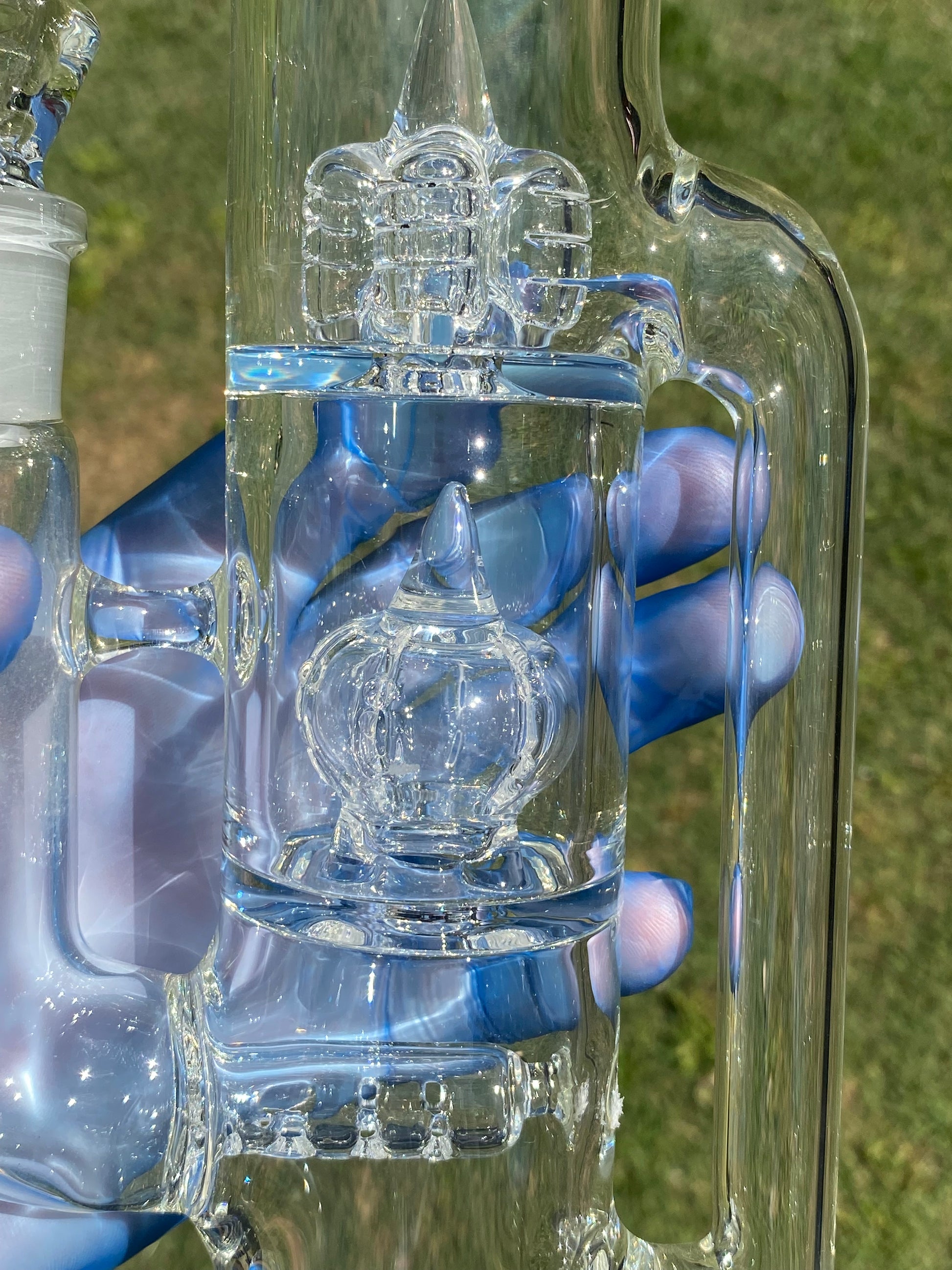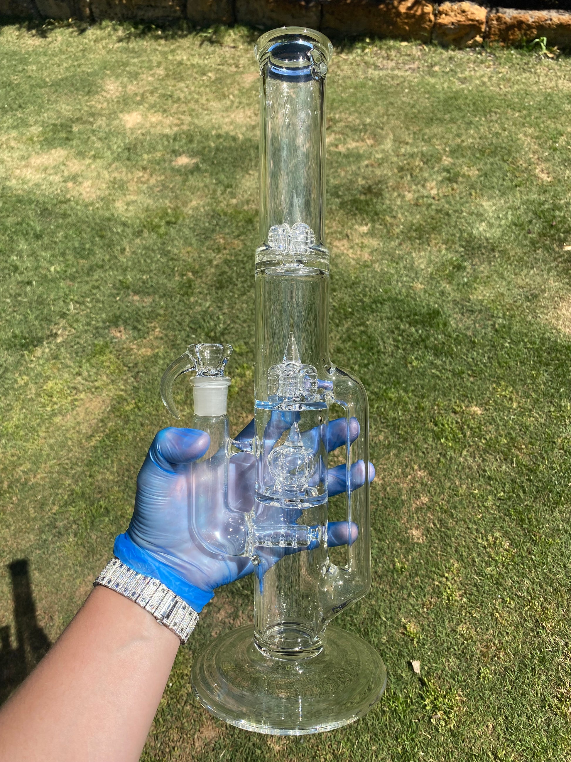 To preserve the crystal clarity and smooth performance of your piece, rinse regularly with isopropyl alcohol and warm water. Avoid abrasive cleaning tools to maintain the pristine glass finish and smooth joint surfaces.
