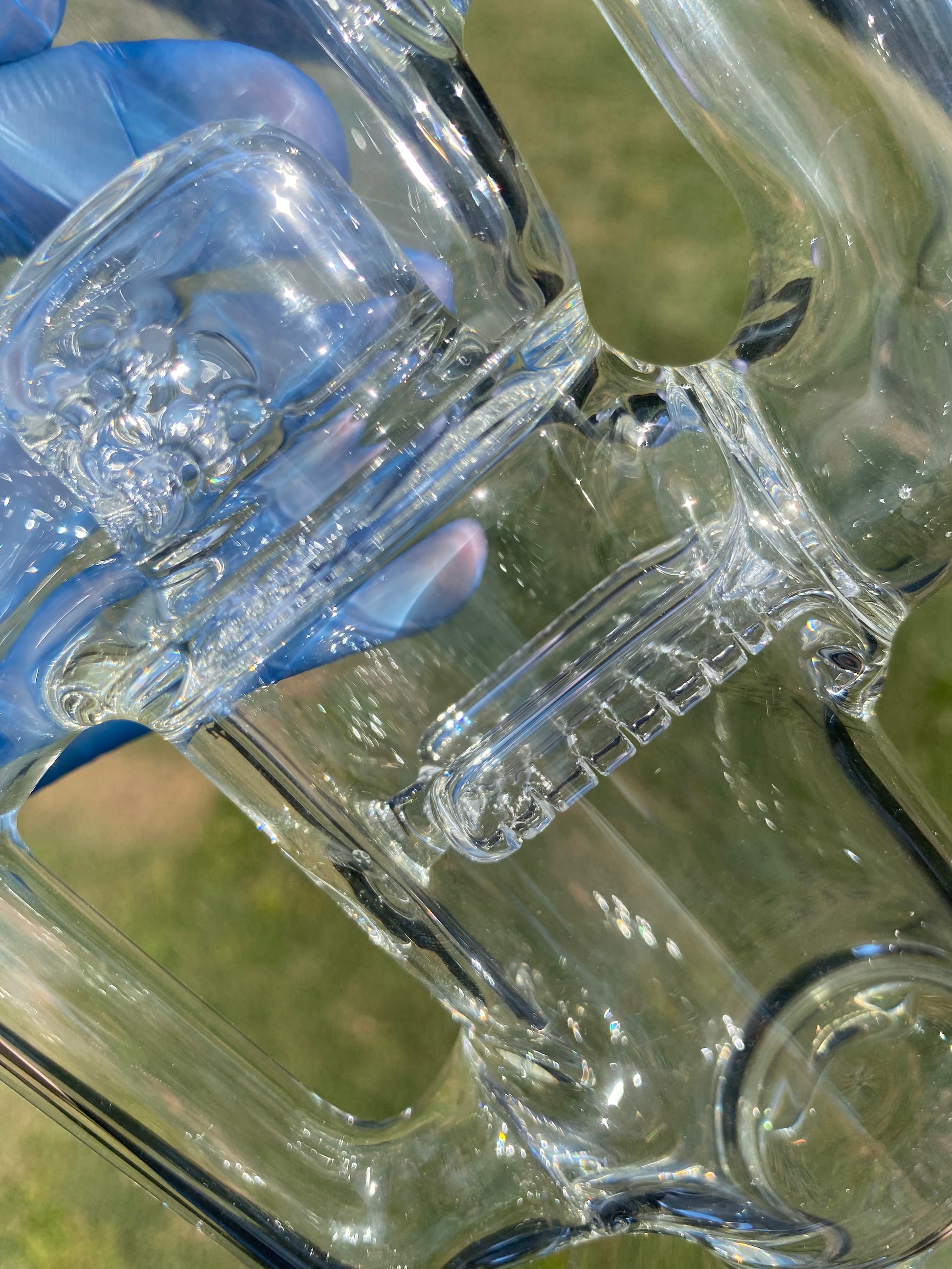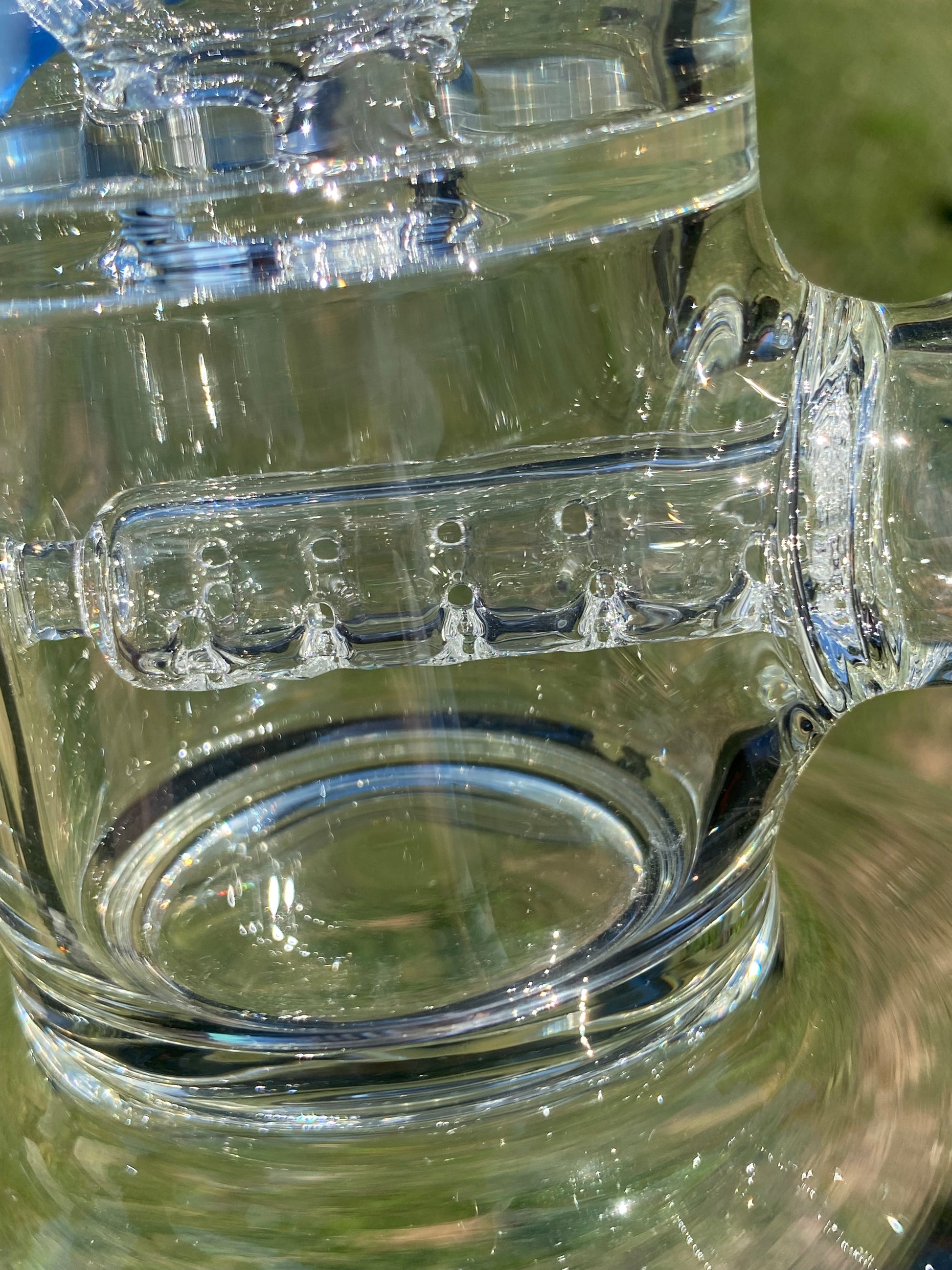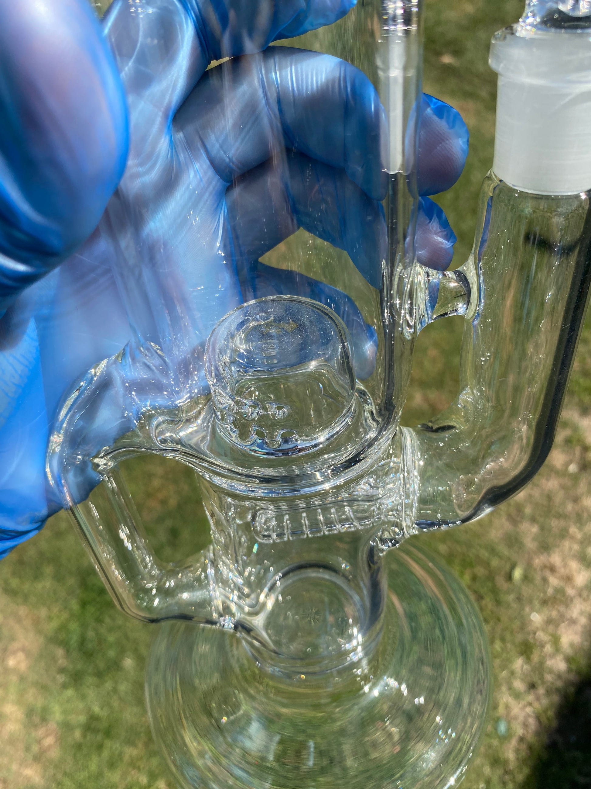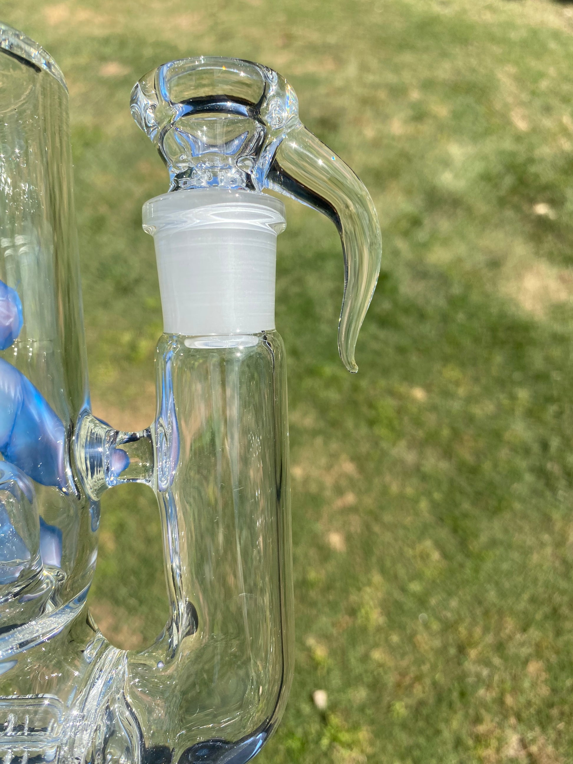 At its heart lies Mohawk’s signature Gline stem percolator, engineered for even, refined diffusion that delivers smooth and controlled airflow. The rear-mounted joint design provides ideal balance and a seamless smoke path, while the integrated catcher section ensures a cleaner experience and easier maintenance. Every contour of the piece flows with intent — from the reinforced welds to the broad, steady base — resulting in a functional sculpture that feels as solid as it looks elegant.
