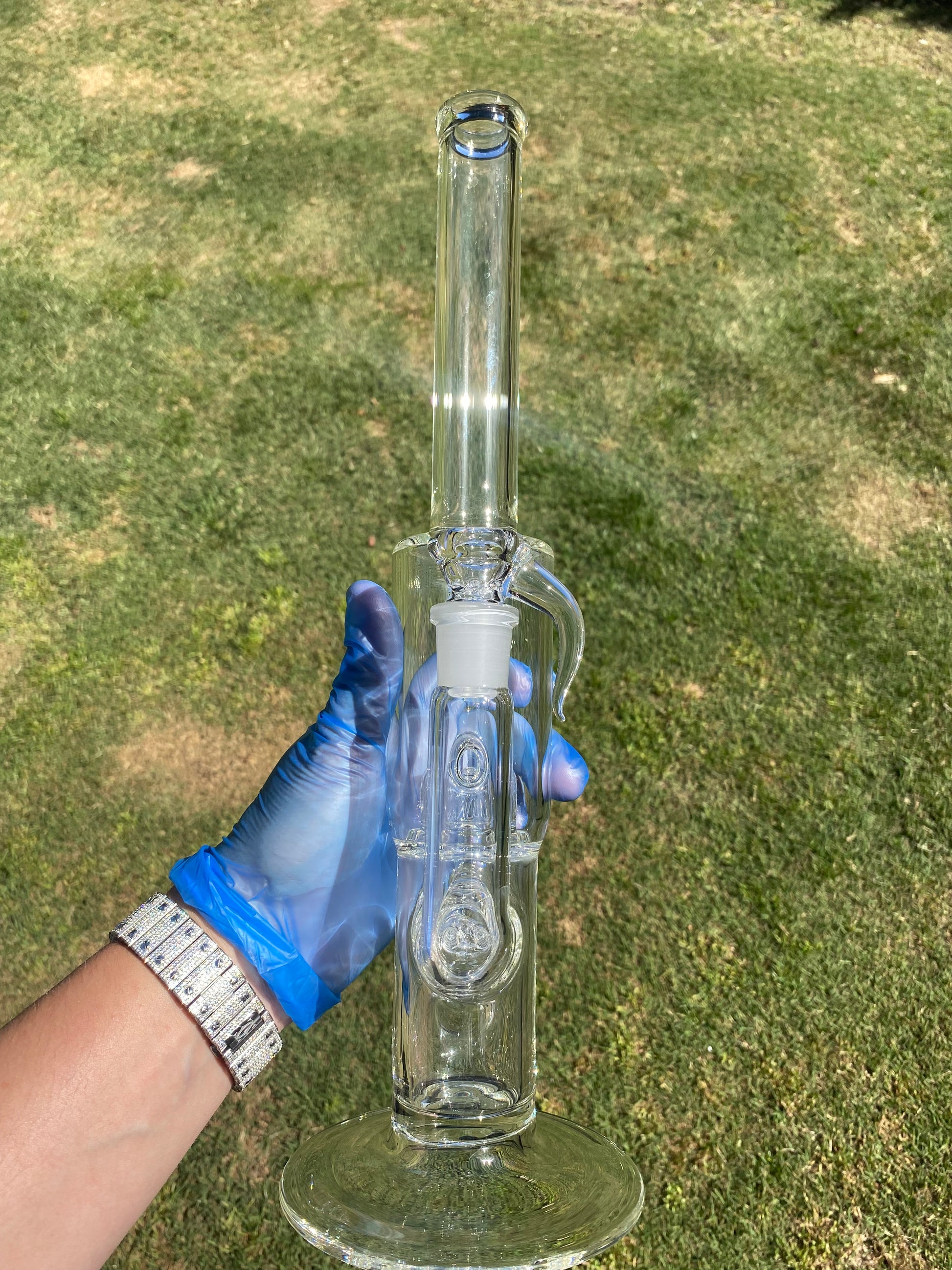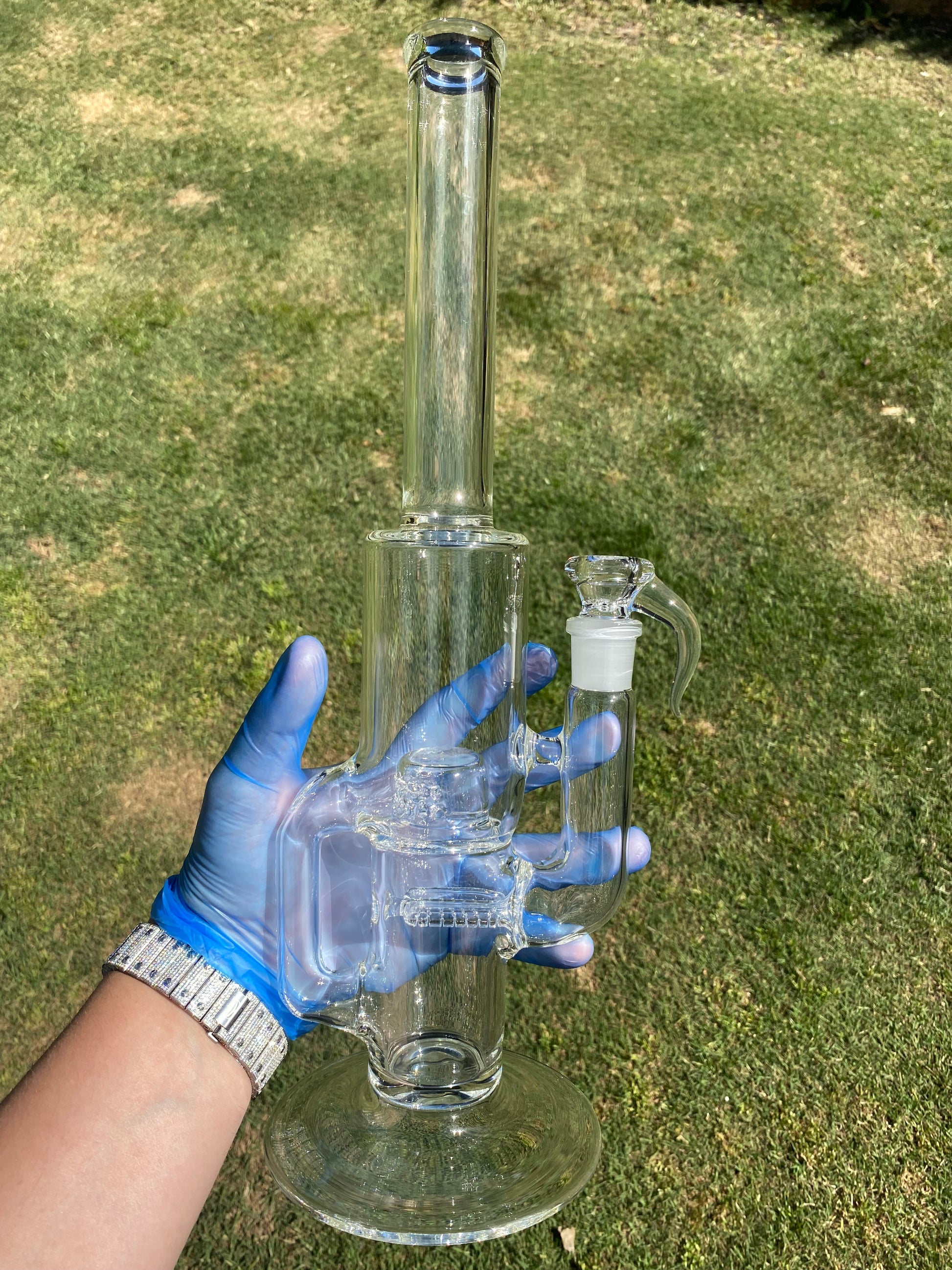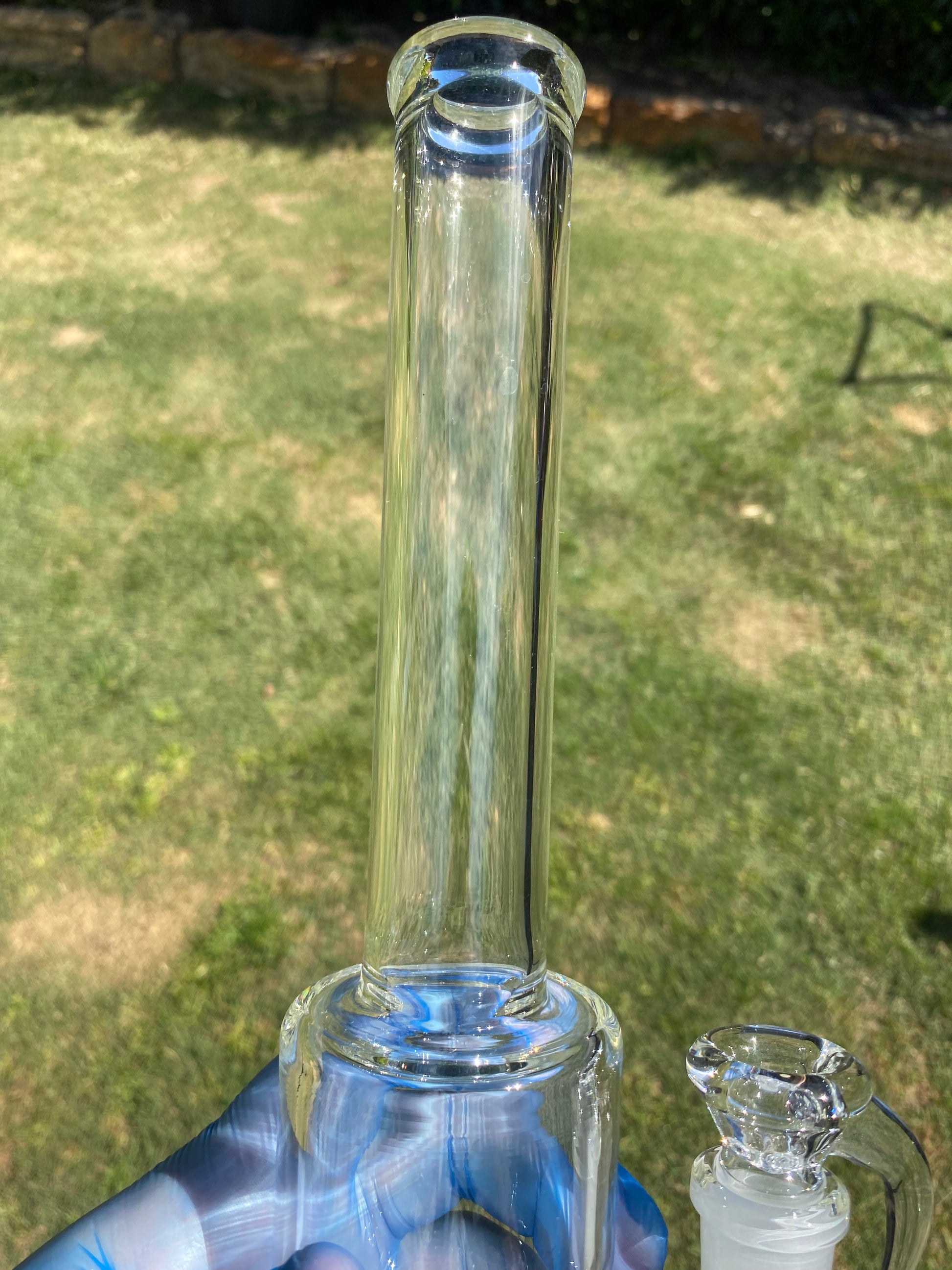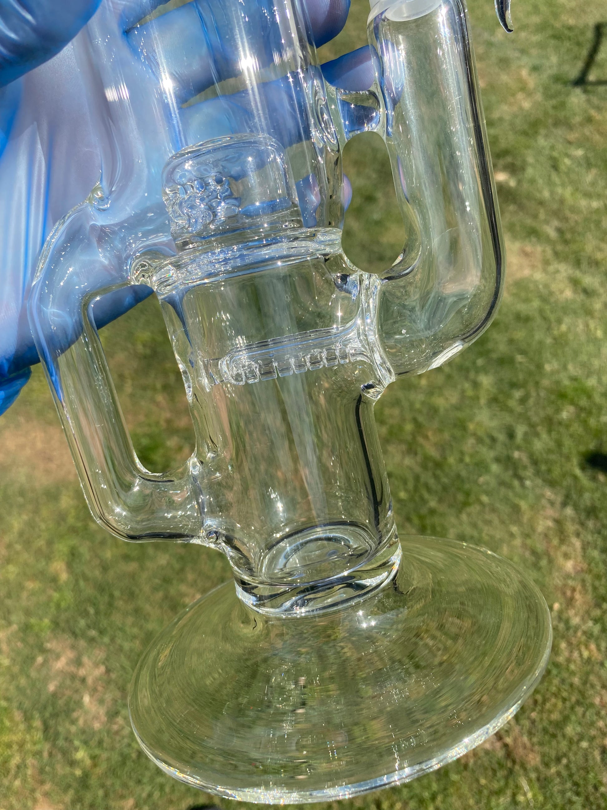 At its heart lies Mohawk’s signature Gline stem percolator, engineered for even, refined diffusion that delivers smooth and controlled airflow. The rear-mounted joint design provides ideal balance and a seamless smoke path, while the integrated catcher section ensures a cleaner experience and easier maintenance. Every contour of the piece flows with intent — from the reinforced welds to the broad, steady base — resulting in a functional sculpture that feels as solid as it looks elegant.