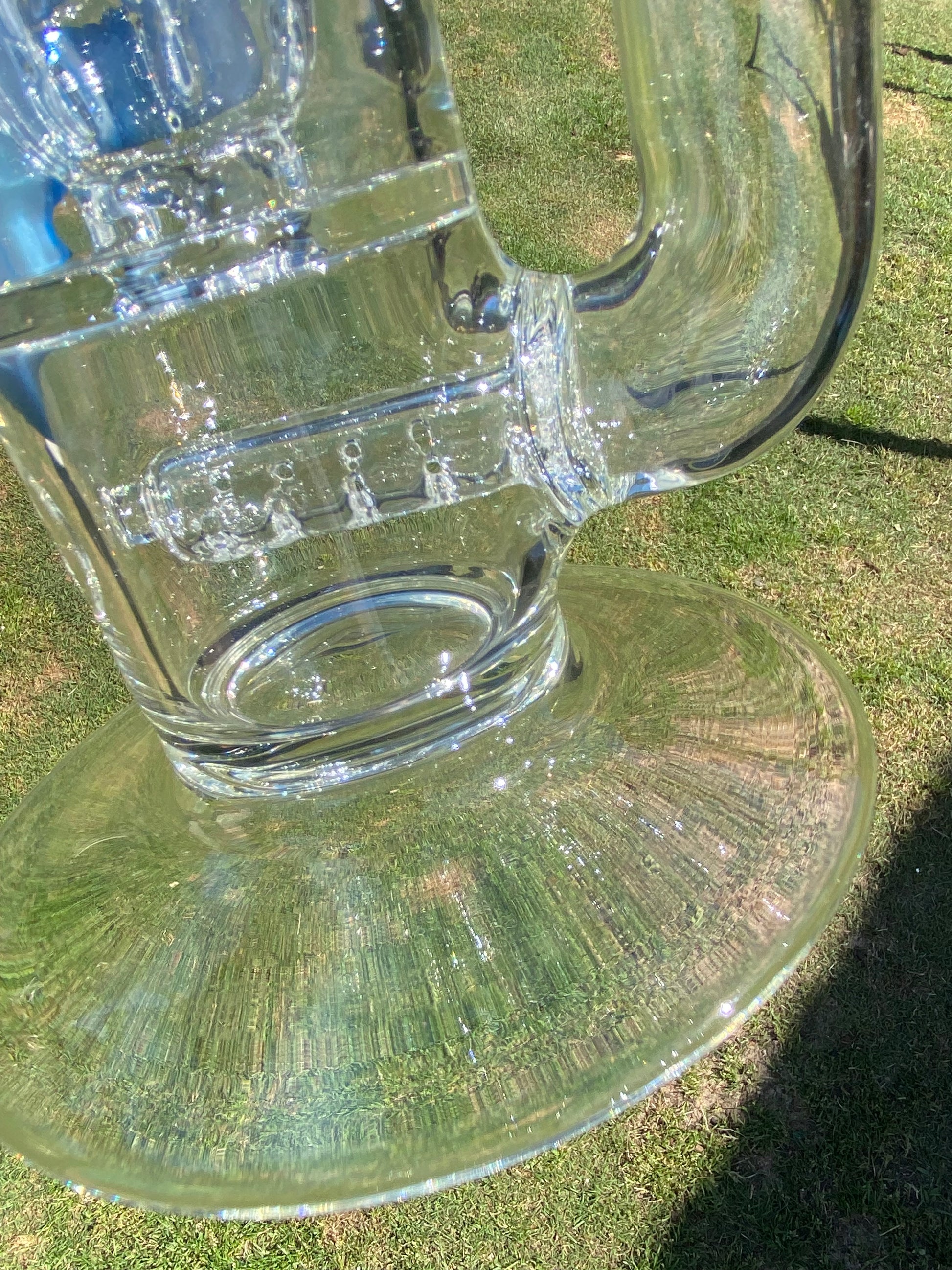 At its core, the precision-cut stemline percolator provides even, consistent diffusion, breaking up each pull for an exceptionally clean and flavorful experience. The straight, slightly bent neck enhances comfort while maintaining a sleek visual flow, and the widened base ensures optimal stability. Every line of the piece speaks to intention — from the carefully proportioned chamber to the crisp joint work — a display of Mohawk’s mastery of clean glass shaping.