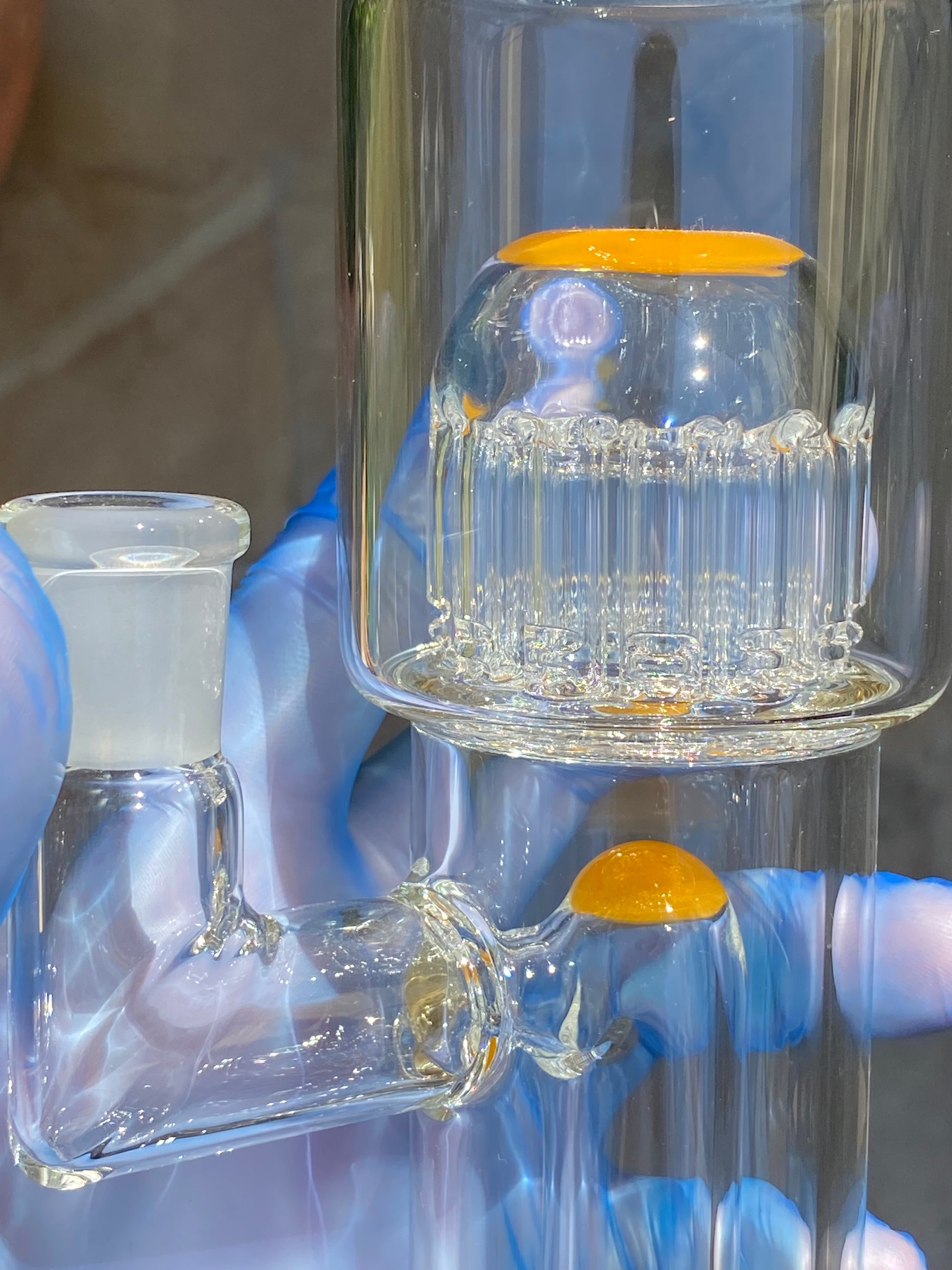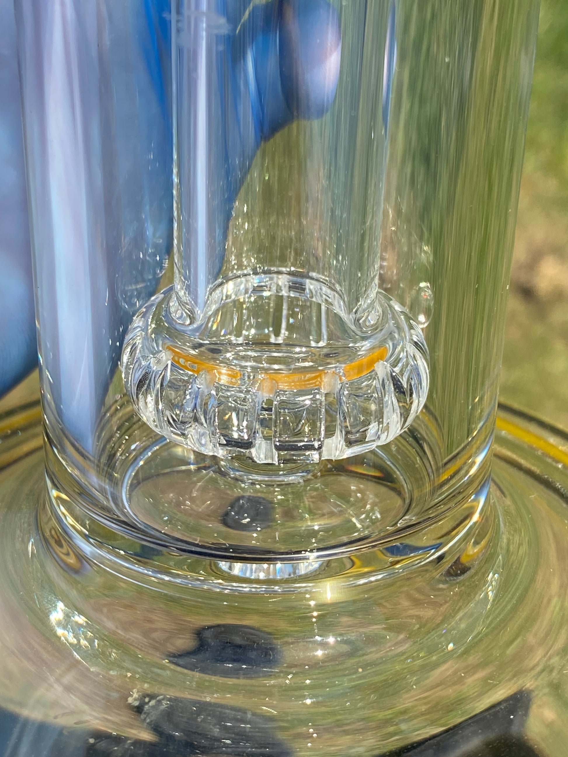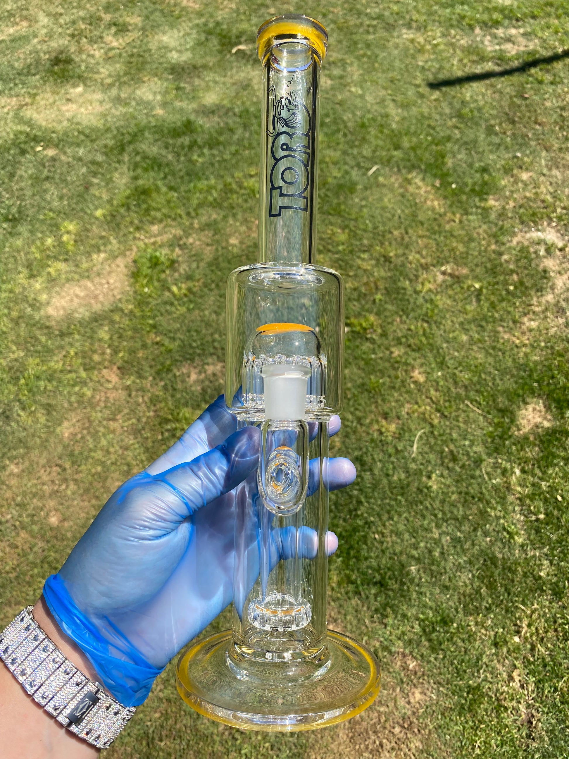 Constructed from premium borosilicate glass, the Toro Shrub features a fixed percolator that delivers consistently clean and flavorful hits. Its reinforced structure ensures lasting durability, while the yellow-accented mouthpiece and base add a refined pop of color — giving the piece both character and sophistication.